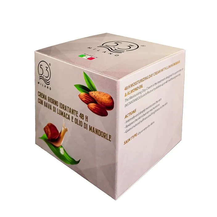 Crema Giorno idratante 48h Bava di Lumaca e Olio di Mandorla ideale per pelli secche o molto secche.