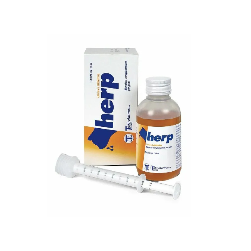 Herp è un mangime complementare specifico per gatti, indicato per il supporto in caso di infezioni virali respiratorie causate da Feline Herpes Virus (FHV-1) e Feline Calicivirus (FCV). Grazie ai suoi ingredienti attivi, Herp aiuta a migliorare le condizioni cliniche e a ridurre la diffusione virale. Confezione da 120 ml.